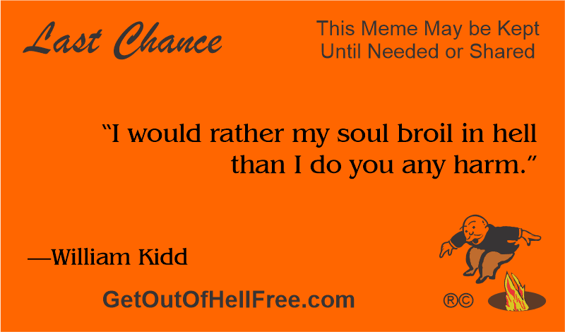 “I would rather my soul broil in hell than I do you any harm.” —William Kidd