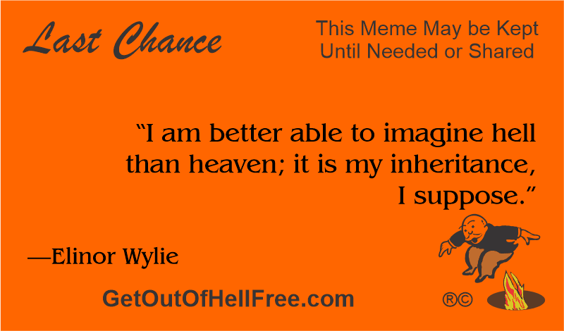 “I am better able to imagine hell than heaven; it is my inheritance, I suppose.” —Elinor Wylie